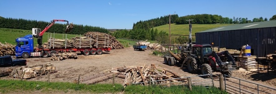 In order to help the drying process, remove some of the uncertainties of the great Scottish weather and also be able to offer far drier logs which are easier to light and give off more heat we operate a couple of log drying kilns. These are heated using wood, often blown timber or thinnings from the farm. The hot air is blown through the logs to wick away moisture, giving far quicker drying times and producing a much drier and more consistent product with moisture contents often in the low teens. Having been through the kilns the firewood is then stored in a ventilated shed ready for delivery.